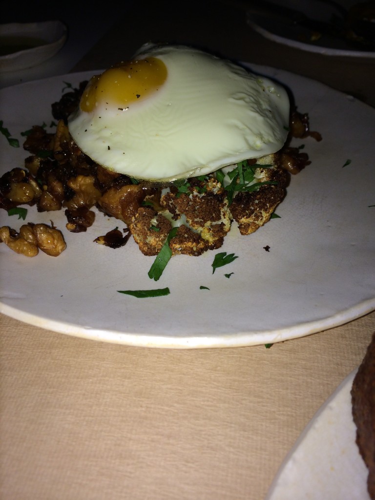 The food at ABC is naturally very nobread friendly, and when it’s not, substitutions can be made. From the market table the diced crab and the roasted butternut squash with apple cider vinegar toasts are my absolute favorites; however, as implied by their names, both are served on top of bread. As I am not too sensitive to cross contamination, I ate the crab and squash off of the bread; this is literally incredible. If you are sensitive to cross contamination, ask for your appetizer #nobread or with a gluten free alternative. The roasted beets are another big hit and are also #nobread approved. All appetizers on the party menu are nobread friendly, and you cannot go to ABC Kitchen without having the roast carrot and avocado salad. The kale salad nocroutons and roasted pear salad with apples are more must-orders! The whole wheat pizzas look incredible but unfortunately you will have to sit these out. Lastly, for entrees, the organic chicken, black sea bass with baby market potatoes, spinach, and olive oil, and scallops are fantastic. Each time I go to ABC kitchen I leave in an absolute food coma. One dish that you cannot come here without ordering is the roasted cauliflower with fried egg and walnuts. Unique, flavorful, and #nobread approved when you ask for nobreadcrumbs. For sides I recommend the mushrooms (if you are a mushroom fan) and the roasted brussels sprouts; these are so good I always have to ask my server to bring out more!