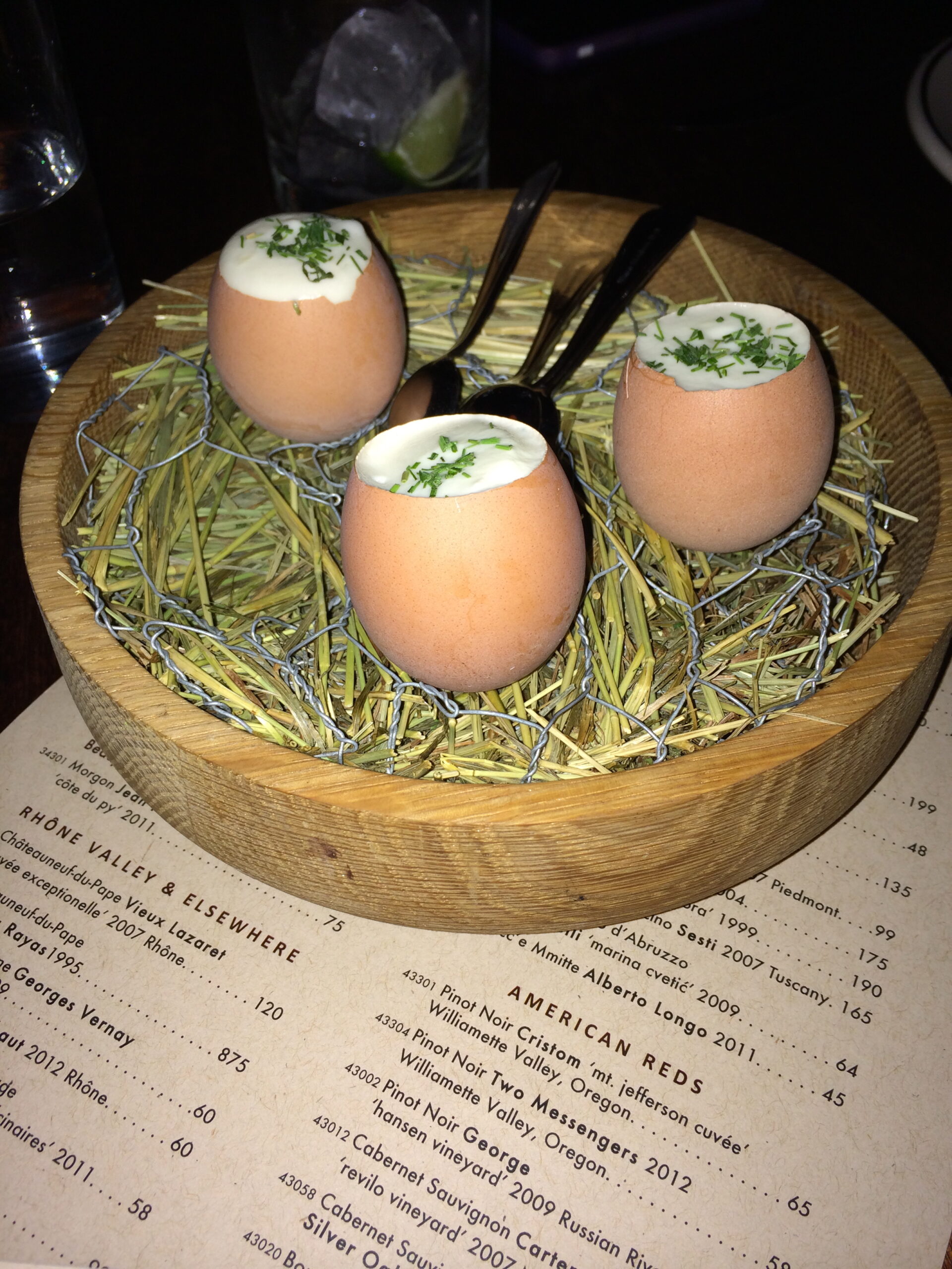 Acme, located in NoHo, is known for its exclusive downstairs lounge, sceney crowd, and fun music. And now, I can add that it is also known for its amazing food. The menu at Acme is classified as American and Modern European; however, I just like to call the cuisine “interesting.” Standard American fare like eggs, chicken, and cauliflower are prepared in an interesting fashion and paired in unique combinations. For example, would you have you ever thought to order lamb and oysters, two popular American dishes, served raw and mixed together? And when was the last time you ordered fish collar and used the fish for lettuce wraps?…