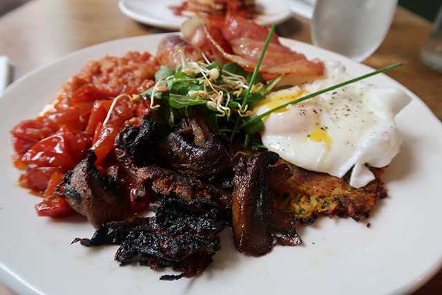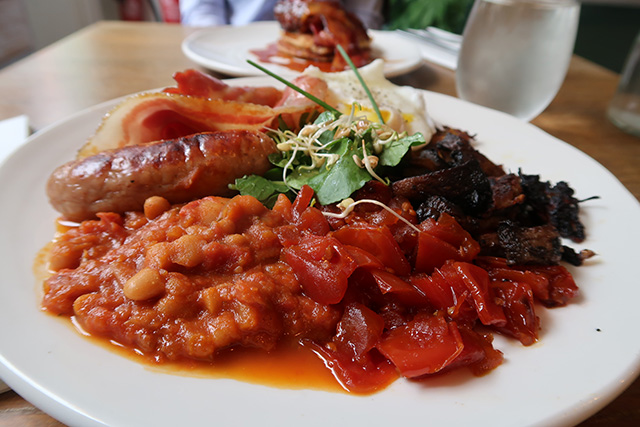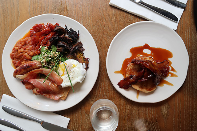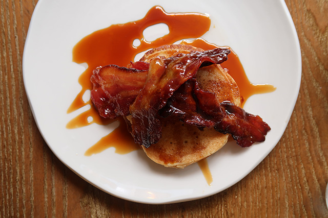 We shared the pancakes served with bacon and maple syrup. These were American style – light and soft, you would have never known they were gluten-free! The bacon was both crispy & chewy and covered in maple syrup – a delicious treat.