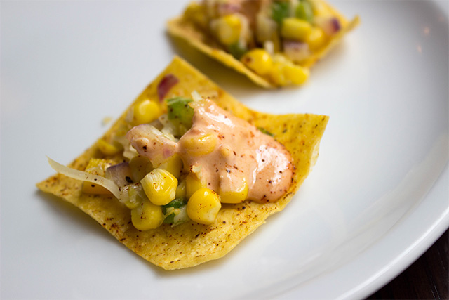 Moments after being seated, my server provided be with a tasty little amuse bouche in the form of a corn chip topped with a sort of corn and jalapeño chutney with a spicy aioli on top. The entire morsel could be consumed in one bite, and it was an intriguing combination of spicy, sweet and crunchy.