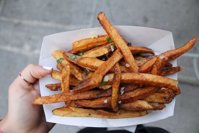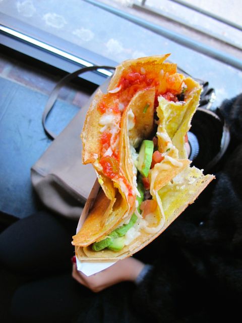 Bar Suzette is located in Chelsea Market along with a number of other quick lunch spots, making it the perfect place to grab a quick bite with coworkers or friends. There can be lines during lunch hours so I recommend going either a little before noon or later in the afternoon to avoid the rush. Personally, Bar Suzette is my favorite place in Chelsea Market thanks to its amazingly delicious, filling, and portable crepes. While I have yet to try any of the sweet crepes, the savory crepes I have sampled so far (Huevos Rancheros and Pesto Chicken) have been perfect. They feel incredibly indulgent thanks to their rich flavors and sizable portions yet still manage not to weigh you down, making them the perfect-sized meal.