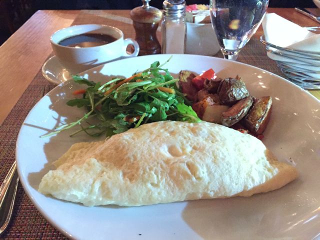 For brunch, my friend and I began by ordering from the mezze section. Just about every table in the restaurant has a selection of 3 or 5 spreads on the table, and we went with the hummus, tzatziki, and roasted eggplant. For my meal, I decided on the mushroom omelette, with mimosas. My friend went with bellinis, and the salmon scramble. My omelet was perfect; the eggs were fluffy and light, and the mushrooms brought a heartiness that kept me full and satisfied. Although I was happy with my “standard” brunch choice, during my next visit I plan to go with one of the options from the specialty eggs menu. I am particularly intrigued by the Turkish eggs (baked eggs with spinach, ground lamb, chickpeas & tahini) and the foie gras sausage shakshuka (baked eggs with tomato sauce, paprika, garlic & homemade chicken foie gras sausage).
