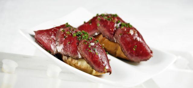 - Beef tartar on kimchi crackers