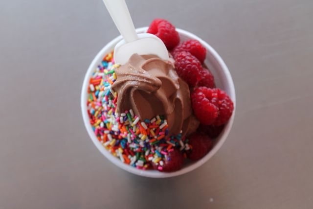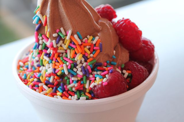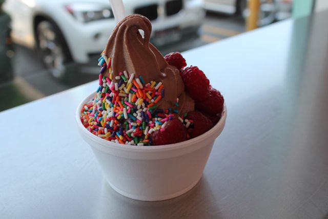 The flavors at Bigg Chill change Monday, Wednesday, and Friday. Some of their best include caramel custard, chocolate butterfinger, and cinnamon latte. There are dairy free options like strawberry as well. I ordered the dairy free chocolate macaron with sprinkles and raspberries! So good! I didn’t miss the milk; the dairy free yogurt was just as creamy. If you’re trying to keep your dessert healthy, no fear! The dairy free yogurt only has 14 calories per ounce. Plus, there are tons of fresh fruit toppings to add to your dessert. Maybe I’m just biased because I quit dairy when I stopped eating gluten, but you should totally try it!
