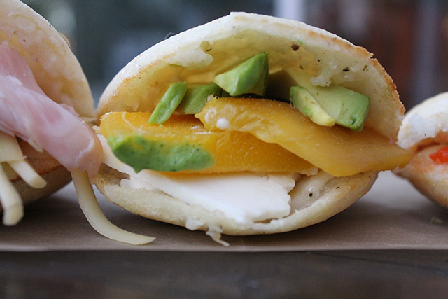 I’d never heard of Bolivar Café, but after a quick Yelp search, I found out this was the place to find gluten-free arepas. This was my first 100% gluten-free arepa experience at Outside Lands in San Francisco. What is an arepa you ask? It’s a corn-based dish from South America that resembles a sandwich of sorts. Two corn cakes (note: 100% gluten free) are put together with a variety of fillings (i.e. pulled pork, mango, avocado, cheese, etc.) to resemble a mini corn-cake sandwich…