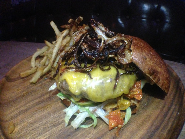 Yes, they have more than chicken wings on their menu and yes they have gluten-free options! Just another way Bounce goes above and beyond. And, no, salads aren’t the only thing you can order if you’re gluten-free (although they have many deliciously green options). Let’s start with the game day snacks – all of their fries are gluten-free (and no cross contamination in their kitchen) including their cheesy plate from heaven – the Short Rib Disco Fries. Once I saw this on the menu I knew I had to order it, and it’s just as delicious as it sounds. Perfectly cooked fries smothered in gooey cheese and a generous pile of short rib. But save room… because there’s so many other great items to order. Our table also started with some of their made-to-order guacamole and corn tortilla chips. The guac had just the right amount of spice and it satisfied this picky Californian’s palette. A+ work, guys. Keeping on the Mexican trend, we also tried their Fish Tacos (served on corn tortillas) and they were as beautifully presented as they were tasty. Did someone say too much avocado in one meal?! Never! Next time I am definitely trying their Deconstructed Nachos. Next up, we tried one of their delicious burgers, which they served on a gluten-free bun. They can also do a lettuce wrap if you prefer! The burger was cooked to perfection and topped with cheese, onions, tomatoes, veggies, and a secret sauce that had just the right amount of spice. This burger is called “The Rudy” and is being entered into the NYC Wine and Food Festival’s Burger Bash contest. It’s got my vote! But the most surprising and stand-out dish for me was the Cauliflower Steak! Usually I opt for a real steak (I do need to come back and try their actual steak next time!) and skip the veggies, but this Cauliflower Steak blew me away. A huge hunk of cauliflower grilled like a steak, served with a delicious sauce – such a unique dish! And a healthy option I actually loved.