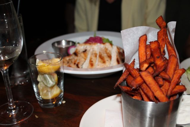 To my surprise, B&B offers gluten free buns! The burgers are huge and topped with two even bigger onion rings (NOT gluten free). I ordered the burger and sweet potato fries (no onion rings) and thought both were amazing. And then I tried my colleague’s truffle burger and nearly collapsed. I love all things truffle, and B&B has perfected the art of adding shaved truffle to red meat. The truffle fries are a perfect supplement to this gem, and I also recommend supplementing all burgers with any of B&B’s salads, fries, and side orders. If you can handle cross contamination, you will be in french fry heaven with the sweet potato and truffle fries, and the brussels sprouts nofeta are a favorite of mine, too. For those of you who aren’t in the mood for a burger, B&B offers meat and fish entrees including salmon, chicken, and steaks that I highly recommend.