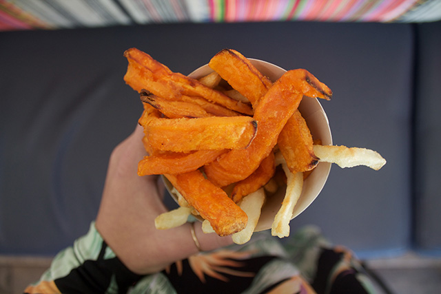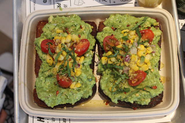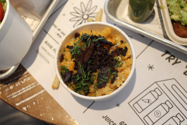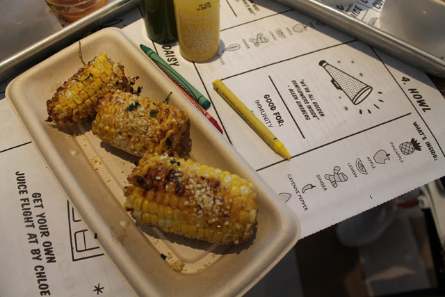 The entire menu at by Chloe is so delicious and tasty, it’s hard to limit suggestions. All salads can be made gluten-free, and to start, my friend and I went with the Quinoa Taco Salad (GF if you sub tempeh in for chorizo) and Spicy Thai Salad (ask for no crispy wontons to make it GF). The Spicy Thai Salad was one of our favorite dishes of the afternoon! The peanut dressing added the right amount of flavor and the quinoa and edamame were the perfect touch. Next up, The Classic Burger with French Fries. Good news everyone!! The Classic Burger is 100% gluten-free, as it is served on a GF bun, and the tempeh-lentil-chia-walnut patty is 100% gluten-free too! To top it off, the french fries and sweet potato fries are air-baked, and therefore they are not subject to ANY cross contamination! For the avocado toast lovers, the avo toast topped with sweet corn is gluten-free and one of the most popular orders at the restaurant. Next up: the pastas, which my friend and I agreed may have been the best part of the meal. Have you ever had gluten-free pasta with sweet potato cheese sauce and shiitake mushrooms? It was incredible. And have you ever heard of avocado-pesto gluten-free pasta?? No? Because I hadn’t either. Both of those gluten-free pastas were amazing!! Artichoke Dip was a favorite appetizer of mine growing up, but due to my gluten and dairy allergy I had not had it in years. Well, by Chloe makes a kale-artichoke dip with gluten-free tortilla chips, and the cheese is made from nutritional yeast; this dip shockingly tastes just like the artichoke dips of my childhood. It is another must order! Lastly, the market veggie of the day was corn with almond parmesan. The corn was incredibly addictive! I love when a dish so simple ends up being one of my favorite parts of the meal.