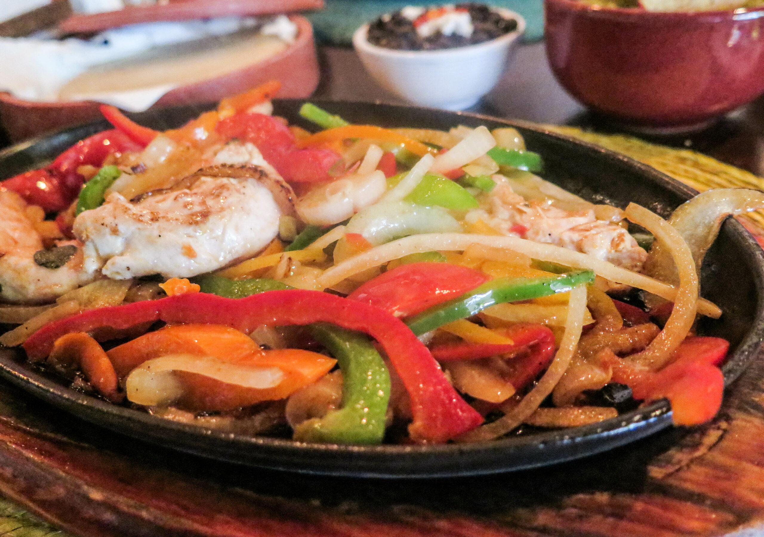 As a main, we shared the chicken fajitas; these were made gluten-free by omitting the traditional seasonings and requesting corn tortillas as opposed to flour. The chicken was served on a sizzling skillet with colourful capsicums and onions. The corn tortillas were warm and served with a selection of salsa’s and guacamole.
