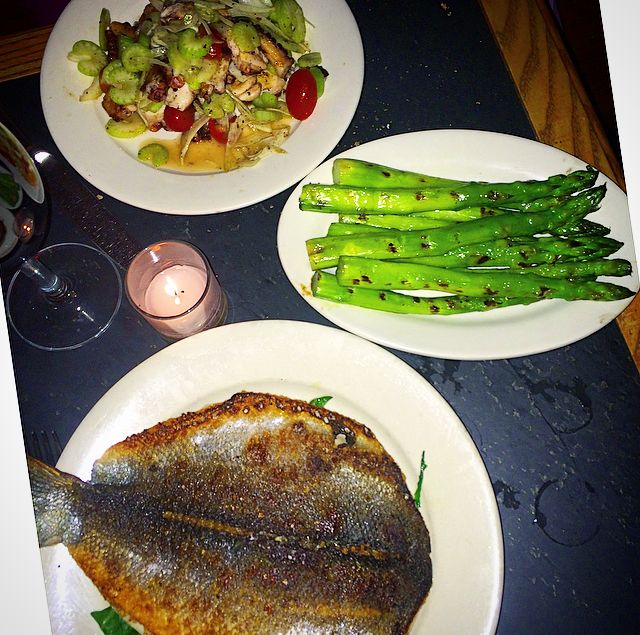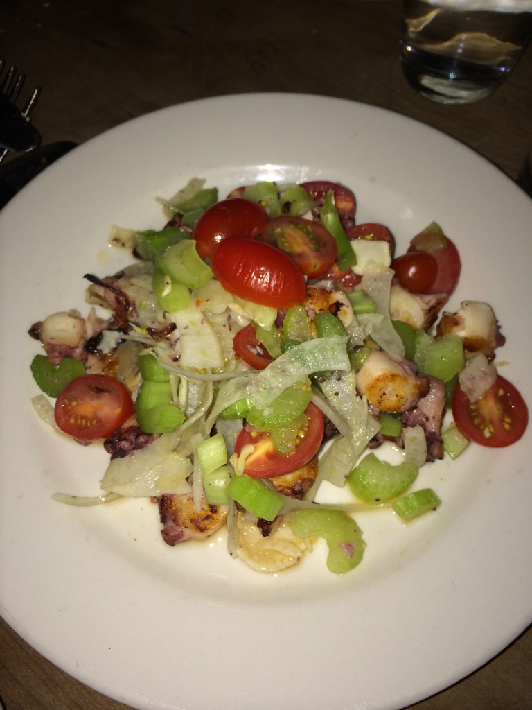 All you have to do at Café Select is look down at the menu and select which starred option is the most appetizing, and you’re all set! So which meals have the ‘*’?? From the salads, I suggest the rocket salad (arugula, fennel, hearts of palm), and the quinoa salad (red & white quinoa, sweet peppers, grape tomato, avocado). From the seafood section, the oysters, grilled squid, and octopus salad (my favorite order of the night) are all gluten free. And for an entrée, I suggest the seared whole branzino, organic chicken, and most importantly the swiss bratwurst. I mean- Café Select IS a German restaurant after all. This bratwurst is served in an onion sauce with potato salad. Also, all of the sides are nobread friendly EXCEPT for the Spatzli (a classic German egg noodle). The market vegetable of the day when I visited recently was roasted brussels sprouts with pancetta. If I wasn’t won over already, this sealed the deal!