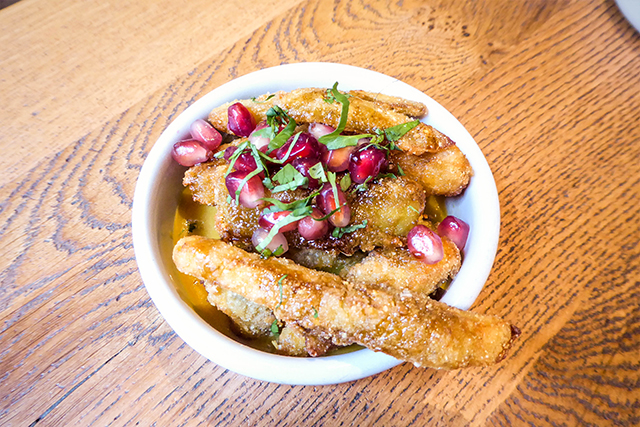 - Chilaso, Aubergine Jalea, Crunchy Corn and Herb Dip