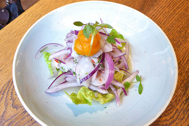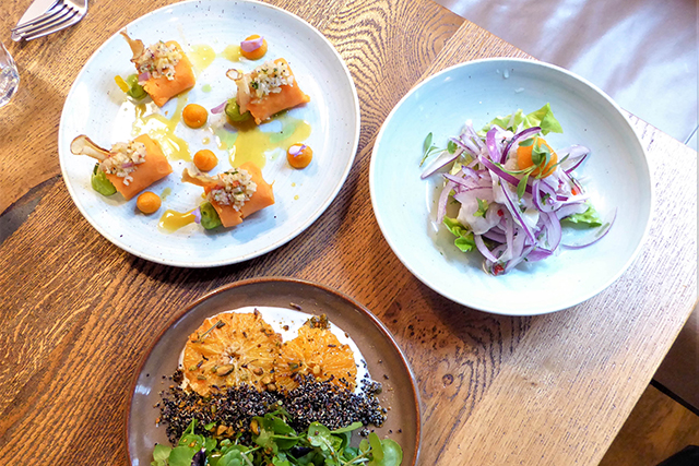 - Causa Andina, Burnt Salad and Seabass Ceviche