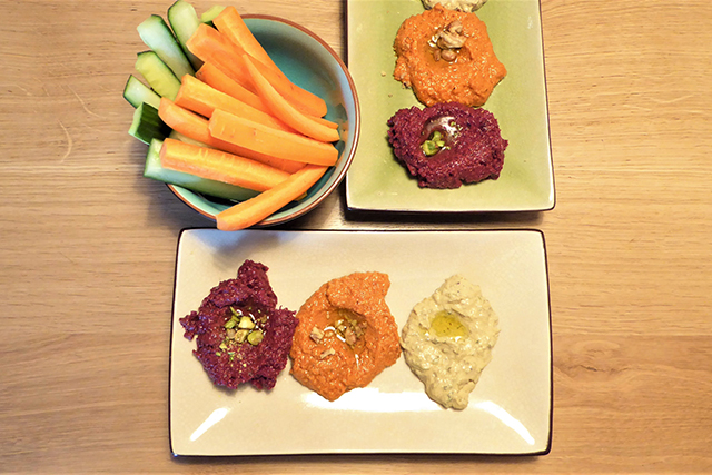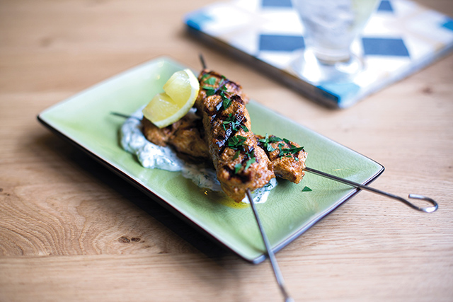 I started with crudités and a delicious trio of dips: Pancar (beetroot), Hammara (red pepper) and Fadi (courgette). The slightly smokey flavour of the Hammara made it my personal favourite. Next up was the Shish Taouk – two large skewers of beautifully grilled chicken marinated in just the right amount of paprika and lemon, and complemented perfectly by the light herb yoghurt served alongside.