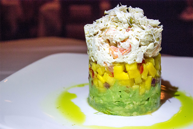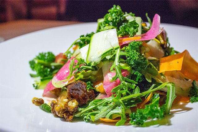 The appetizer round included a Shrimp, Crab, Avocado & Mango Stack, and an Autumn Salad. The seafood stack had an absolutely beautiful presentation, which entailed a luscious base of avocado, followed by a mango and red pepper mix, and finally, a mixture of crab and shrimp in a remoulade sauce. The Autumn Salad was one of the highlights of the meal, full of brightly colored watermelon radishes, carrot ribbons, and zucchini, atop a nice bed of kale, and topped with some candied walnuts.