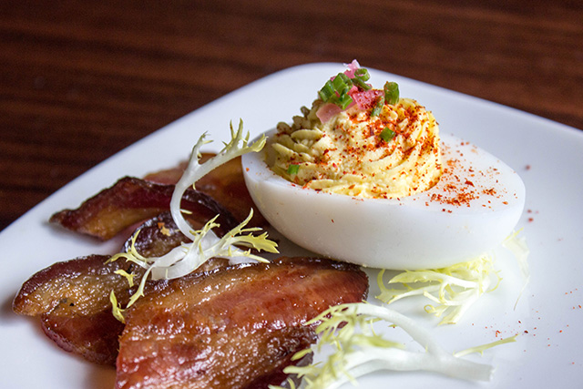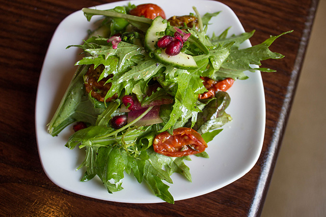 For an appetizer, I ordered the Deviled Duck Eggs and the Tavern Salad. The Deviled Duck Eggs topped with smoked bacon that is butchered in-house, was absolutely delicious. The filling was creamy and luscious, and the bacon was out of this world. I would like to call myself a bacon connoisseur, and I can say without a shred of doubt that this was some of the best bacon I have ever had the pleasure of consuming. The Tavern Salad with fresh cherry tomatoes, English cucumber, pomegranate seeds, and a citrus vinaigrette was absolutely delightful and the perfect contrast to the deviled eggs.