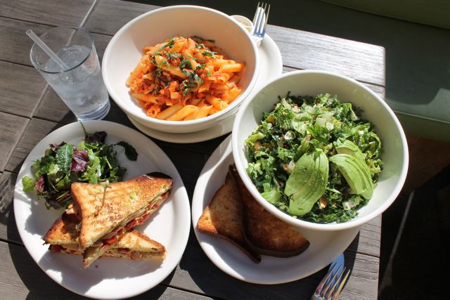 Not only is the menu at Coral Tree extensive, but it is incredibly gluten friendly! For the brunch crowd, the famous egg scrambles and omelettes are served with toast, but gluten free baguettes are available! And the baguettes are delicious. If you’re a benedict person, sub out the English muffin and replace it with the GF baguette; the benedict is just as good! Before I really dive into the food and my top picks, I have to compliment Coral Tree Cafe on its value. Food is appropriately priced and the portions are HUGE. You know when you’ve been eating for a while, and you’re running out of steam, and then you look at your dish and it seems like it is all still there? That sums up my experience. For lunch, I highly recommend the kale salad with golden raisins, toasted almonds, and quinoa, all dressed in a lemon vinagirette. I ordered my salad nocheese, and added avocado instead, and it was delicious. I also ordered the grilled chicken panini on GF bread. This sandwich is one of the restaurant’s most popular orders and I understand why! All sandwiches and paninis can be made gluten free except for the turkey meatloaf sandwich, veggie wrap, and veggie burger. Lastly, I ordered the turkey bolognaise with the GF penne pasta. The turkey bolognaise was house made and a definite must order for all of the pasta lovers. Other nobread approved items I look forward to trying in the future: the brown rice bowl, cajun salmon, orchard salad with grapes and granny smith apples, and the farmer’s market vegetable omelette.
