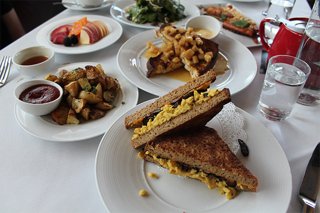 Recently, Crossroads did away with their lunch service, and has launched a daily brunch in its place! Featuring a gluten-free French Toast that was one of the best I’ve ever had, multiple salads, a delicious side of gluten-free roasted potatoes, and more, now everyones favorite meal of the week can be enjoyed everyday! Crossroads carries gluten-free bread, and I’m so glad they do, because the classic “egg” sandwich made with tofu and algae can now be enjoyed by us gluten-free folk, as well as several of the other sandwiches! On our recent visit to the restaurant, I enjoyed the spinach salad with garlic vinaigrette and spicy carrots, but I’m told the “mountain” of kale caesar (minus the garlic focaccia croutons) is a must try! For dinner, the menu and range of gluten-free options expands, and the flatbread (request GF crust), crab cakes made with hearts of palm and postcard-perfect artichoke oysters are crowd favorites!