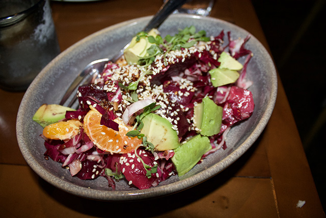 “Gluten-free” and “Italian” are words not often used in the same sentence, but that is not the case at CUCINA enoteca. I first stumbled upon this restaurant at Fashion Island on a girls night out and it was so delicious I knew I had to bring my gluten-free grandma back sometime soon. Pretty much all of their appetizers can be made gluten free – the salads can be ordered without croutons or crostinis and even the burger can be ordered as a lettuce wrap. My table tried the Burrata, the Prosciutto Caprese Salad (yum!), the Roasted Beet Salad, and the Artichoke & Truffle Hummus with gluten free crackers (MY FAVORITE!). No, they don’t have a gluten-free pizza crust, but they do have gluten-free penne pasta which can substitute for any of their pasta dishes! We tried the Mushroom Bolognese and Spinach Creste pasta which was delicious, but my absolute favorite dish of the evening was the gluten free version of the ‘Bucatini’. This pasta was as beautiful as it was flavorful and spicy and it had a soft boiled hen egg oozing yolkporn on top. Yum! In fact, all of the pastas can be made gluten-free except for the Tortellini. We all know how much NOBREAD loves veggies, and the roasted brussels sprouts and cauliflower are musts! The cauliflower is gluten-free when you has for no breadcrumbs, and both are cooked in a shared fryer, so if you are super sensitive please beware.