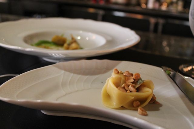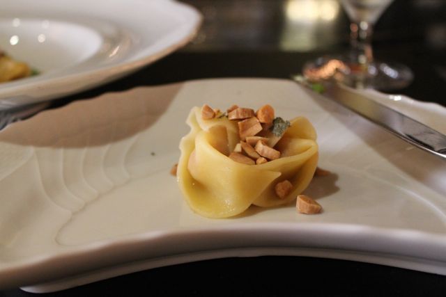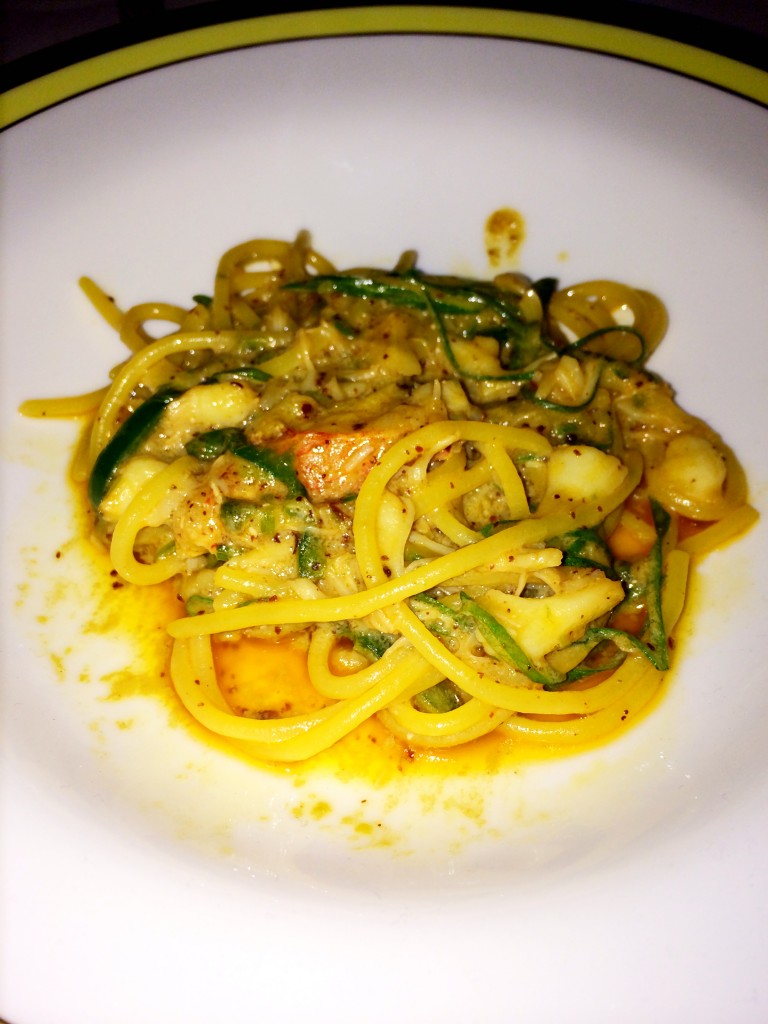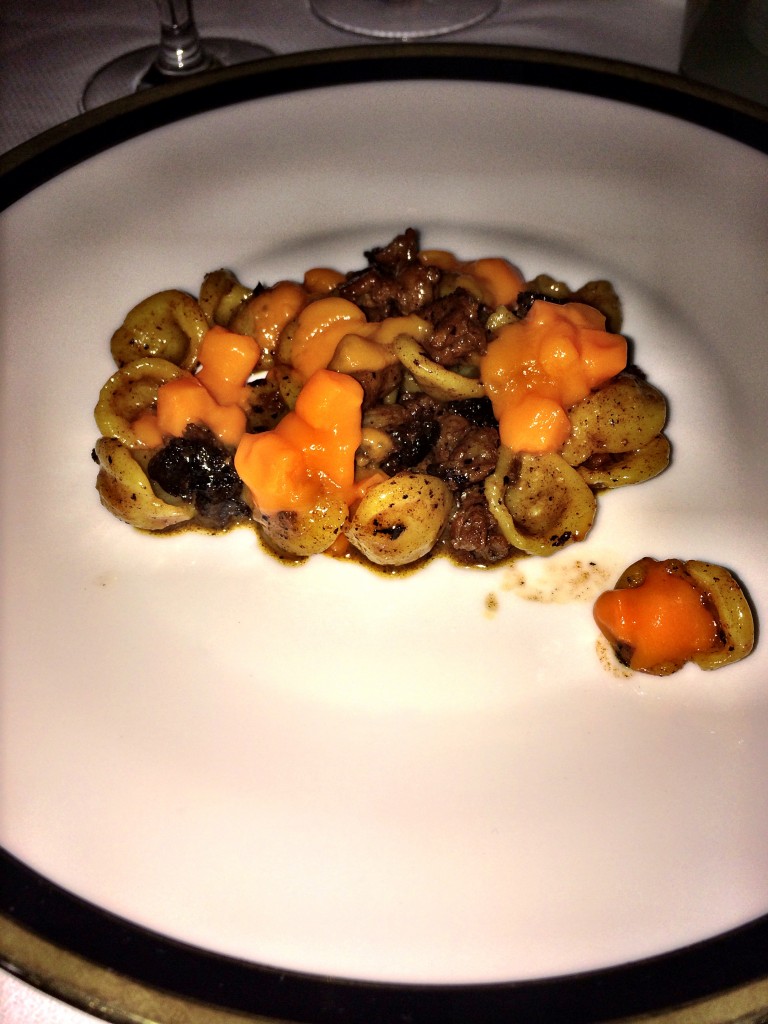 To begin, my friends and I ordered the pumpkin salad completed with varieties of roasted squash, the grilled octopus, and the cool lobster salad on burrata. If we weren’t satisifed after these appetizers, we still had THREE pastas coming our way, and a main entree! As I mentioned, the best part about Del Posto is that ALL pasta on the menu can be replicated in a gluten free form, making the fractional portion of the menu that is NOT gluten free 100% nobread approved. As much as I praise restaurants who have just one form of gluten free pasta on hand, it is amazing to me that the Del Posto team has perfected several delicious varieties! Not only can all current pastas be replicated, but Chef Matt Abdoo and his team are working on a few new shapes that will be made in the gluten free form, too. For our pasta selections, we were torn between the orecchiette with lamb neck ragu notoastedrye, the spaghetti with dungeness crab, and ricotta & egg yolk gnudi with black truffle. When manager, Tyler St. Pierre, saw that one of my friends was going to sit out on the orecchiette because she is nomeat, and I was going to sit out on the gnudi because I am nodairy, he insisted that we order all three, and that he would surprise my friend and I with pasta we could indulge in while the rest of our table enjoyed the course being served. All pastas, as well as the two surpise substitute pasta dishes for my friend and I, were absolutely incredible!