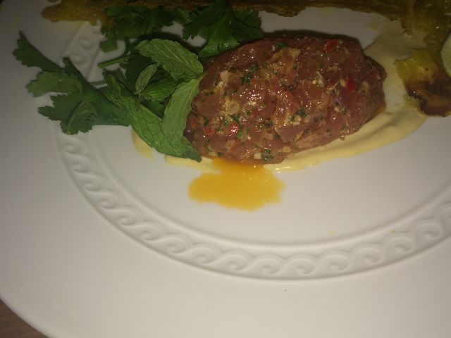 French restaurants are typically known for their delicious breads and pastries, and upon first glance of the menu I was concerned that I wouldn’t be able to indulge in many of the popular dishes. Thankfully, my waitress was fully aware of gluten allergies and the components of each dish, and she was happy to point out what I could and couldn’t have. Yes, crepes and pita are components of several dishes, but more often than not you can ask for your dish nocrepe or nopita. For instance, the tuna tartare is gluten free if you ask for it nocrepe and the lamp carpaccio is gluten free if you remove the side of pita. These two dishes are staple orders at Dirty French, and I highly recommend both! The terrine and gnocchi are two other popular appetizers, but unfortunately these two can NOT be prepared gluten free. For entrees, I HIGHLY recommend the black bass with razor clams and pistou sauce. This dish was incredibly flavorful and might have been my table’s favorite dish of the night. The bouillabaisse is also gluten free if you order it with nocrouton, and I’ve heard it’s awesome, too. Lastly, my table ordered the chicken and crepes. Unfortunately, the chicken is NOT gluten free as soy sauce is used to marinate the chicken, and the crepes contain gluten, too. The gluten free cote de boeuf is HUGE, so if you order this, I hope you’re hungry. Dirty French also serves an extensive list of side orders; my table ordered the cauliflower, which was perfectly roasted, the Japanese squash (unbelievable) and the pommes frites. The frites looked amazing and were sliced thin like large potato chips, but unfortunately they are subject to cross contamination so I recommend avoiding.