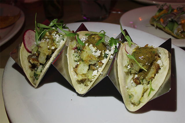 I realized right away that I’ve been to El Chavo before! It is the perfect place to have dinner with a group of friends before a night out or celebrate your birthday. Known for their unreal ceviche, lively atmosphere, and of course, their margaritas, El Chavo is one of the area’s most popular restaurants, and the ultimate spot to kick off your night. Best of all, as with most Mexican restaurants, the majority of dishes are corn-based and gluten-free! To start, the yellowtail in a young coconut is one of the most popular dishes at the restaurant, and can be found on most tables! I also recommend starting with the chips and guacamole, because you should ALWAYS order chips and guacamole when you go out for Mexican! My friends and I went to El Chavo for Tamale Tuesday, so of course we ordered the tamales! This dish is perfect for vegetarians, and it was delicious! Next up, the tostadas! We ordered the shrimp and octopus tostadas, and the octopus tostada filled with creamy avocado was probably my favorite dish of the night! El Chavo is also known for their tacos, and all tacos are gluten-free because they are served on corn tortillas! Unfortunately the restaurant was sold out of pork belly, as it is the most popular item on the menu, so we couldn’t order the pork belly taco. Not to fear, we opted for the potato taco (great for vegetarians too) and the short rib taco, and both didn’t disappoint!