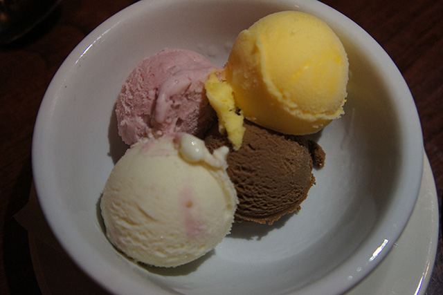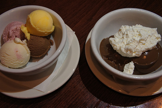 In terms of entrees, Ella’s does not offer gluten free-pasta or calzones. No need to fear; every pizza (expect the Polpotini Pizza) can be made gluten-free! All pizza toppings besides the Ella’s meatballs are gluten-free too! I highly recommend the Soppressata Pizza or the Margarita Pizza with gluten-free crust. The Soppressata features parmesan, sweet Italian sausage, and roasted red peppers, and it is absolutely delicious! The Margarita pizza tastes extremely fresh with its fresh buffalo mozzarella and basil. The tomato sauce on both pizzas is also exceptional, and something my friend cannot stop talking about! For dessert Ella’s has two gluten-free offerings: the Homemade Ice Cream and the Double Chocolate Pudding. The Chocolate Pudding is sure to please any chocolate lover, and the Homemade Ice Cream is surprising with its mango and white chocolate raspberry flavors.