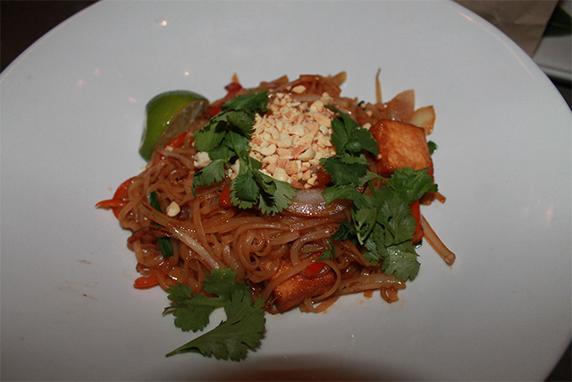 I went to dinner at Estate last night and was transported to a magical “Estate of Mind” where each dish was prepared like a work of art. All of the plating was intricately designed and visually stunning. But nothing compared to the taste. My favorite dish by far was the Double Pork Chop “Heluka” – a pork chop so tender it melted in my mouth. AND it was wrapped in bacon!! I can say, without a doubt, this was the best pork chop I have ever eaten. The pork chop was served over a roasted kabocha pumpkin mash that was really tasty. My table also enjoyed the daily farmers market selection (Brussel Sprouts, Sweet Potatoes, & Queso Fresco) – I love how the restaurant prides itself on using the freshest ingredients from that day’s farmer’s market – you can’t get fresher than that. They also have an amazing variety of appetizers that made my mouth water when reading the menu. If you are gluten-free and vegan, I highly recommend the Pad Thai! Just ask for it to be made both ways. Although I usually opt for shrimp in my Pad Thai, I ordered it with tofu as my friend is vegan. Some of their GF options include the Lollipop Kale, Crispy Skin Salmon, and french fries. Estate is also known for their creative cocktails – I tried the “Dew Process” which tasted like a lavender lemonade. And do not forget to save room for dessert! Not only does Estate have a selection of sorbets, they also have a Warm Flourless Chocolate “Souffle” Cake that is to die for.