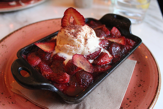 We had to round out all of that savory food with some sweets, of course. We opted for the seasonal wood roasted strawberries which are served warm with a dollop of cheesecake ice cream. I typically go for the more cakey or chocolate items, but this is not to miss. That being said, we did get our chocolate fix in. The chocolate pudding cake is fudge based and dense in the most delicious way possible. Without the malted cream and cookie, this baby can be made gluten-free.