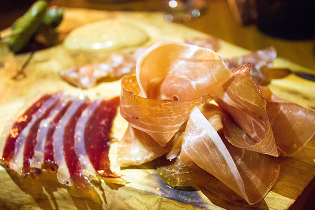 For the first course, I ordered the baby kale salad with dried cranberries, pumpkin seeds, sliced apple, almonds and a custom vinaigrette. Typically the dish is served with a brown butter-cider vinaigrette, but I can’t eat dairy, and they were more than happy to make the dish accordingly. I also snacked on the charcuterie plate that featured wild boar Italian salami, la quercia prosciutto, Hudson Valley duck prosciutto, and Olympia Provisions’ saucisson sec. The kale salad and charcuterie served as a well-balanced first course.