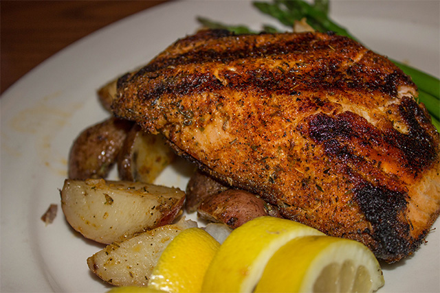 For the main course, I ordered the Blackened Salmon and the Seafood Jambalaya. Each diner has the option to order Fish Market’s fresh fish blackened or grilled. I opted for blackened, as I am particular fond of smoky flavors with my fish. The salmon was served with roasted potatoes and steamed asparagus, which added a nice sustenance to the dish. I especially enjoyed the Seafood Jambalaya, chock full of shrimp, scallops, Andouille sausage, and chicken. The multiple proteins made this dish extremely filling and flavorful.