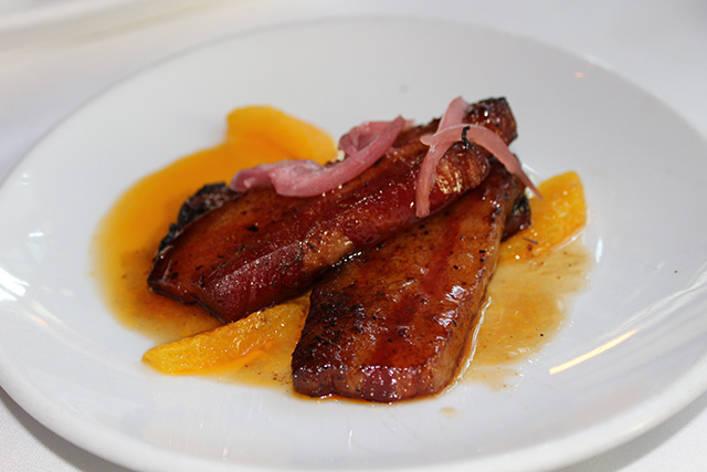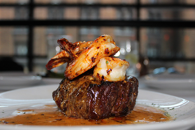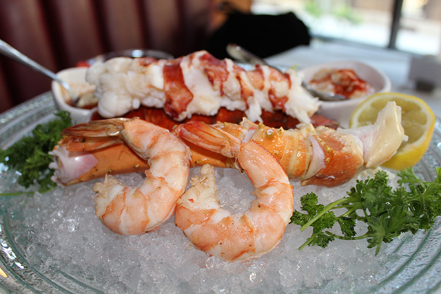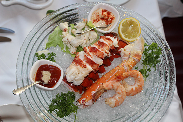 To start, we were given a veggie plate with smoked cheddar onion dip infused with chardonnay, as well as a second dip containing brie cheese and champagne. Afterwards, their Chilled Seafood Tower For Two and their Maple-Glazed Slab-Cut Bacon were presented. The seafood tower contained lobster, lump crab, shrimp and crab legs with cocktail sauce and a creamy horseradish mustard sauce. Meanwhile the bacon was tender and – no joke – melted in my mouth. To put it lightly, I was left stunned and already full.