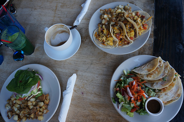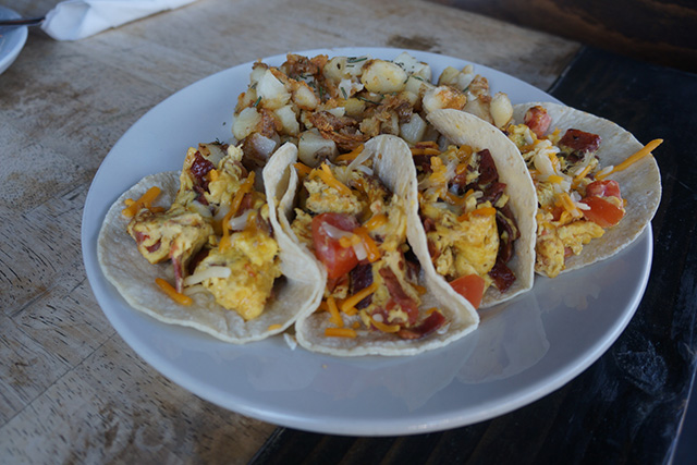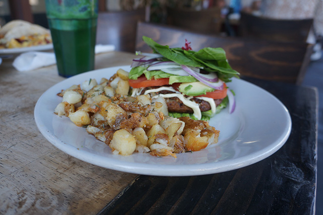 Although the breakfast menu may appear to be gluten-unfriendly, the restaurant is more than willing to make adjustments so that you too can enjoy the breakfast burritos and scrambles. I ordered the Allman’s breakfast burrito, gluten-free of course, and to accommodate my allergy, the chefs used four corn tortilla tacos, which were stuffed with eggs, turkey bacon, tomatoes, and cheddar cheese. The serving size was more than enough, leaving me with leftovers to take home. All of the breakfast dishes are paired with a side of potatoes, fruit, or cottage cheese. Unfortunately, the crepes and french toast items are NOT gluten-free, so make sure to stay away from those.