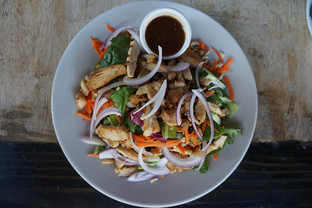 For lunch, I suggest the gluten-free style chicken quesadilla; it’s so rare for restaurants to serve gluten-free quesadillas! The chicken was very fresh, and the perfectly melted cheese stayed warm with every bite. The quesadilla was also served on four small corn tortillas that looked similar to tacos, but instead were melted together with cheddar cheese. Each lunch dish comes with a side of fresh greens or potatoes. Fratelli has a wide selection of burgers that can easily be made gluten-free by subbing lettuce for the bread. The veggie burger in particular is superb if you are looking for a meat alternative. The panini are not gluten-free, but I’m sure the friendly and helpful staff will find a way to accommodate and serve the items on a bed of lettuce. Lastly, we ordered the Chinese Chicken Salad WITH NO DRESSING. This salad consists of chicken, lettuce, carrots, cucumbers, red onions, crushed peanuts, and it can also be made vegan.