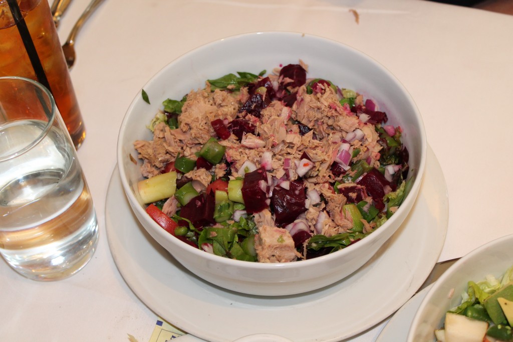 With the exception of the obvious orders such as sandwiches and pastas, the menu is naturally very gluten free. The menu is also HUGE, and it is hard to go wrong with anything you choose. To order, I HIGHLY recommend the chopped chicken salad, lobster salad, grilled shrimp on fava beans, omelette of the day, grilled calamari, sea scallops, broccoli rabe, and truffle fries. The grilled calamari is lightly breaded, so make sure you ask for the calamari grilled nobreading. The truffle fries at Fred’s are phenomenal; they are cut in thick rectangles and full of potato with just the right amount of truffle. Careful- these fries ARE subject to cross contamination in the fryer so if you are ultra sensitive I would avoid. Fred’s is famous for their Mark’s Madison Ave chopped salad, which has 17 different ingredients & italian tuna in every bite. If you are a fan of tuna, you cannot come here and NOT order this salad.