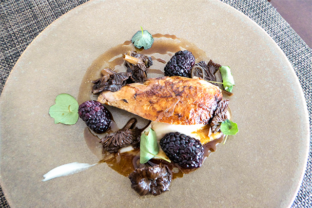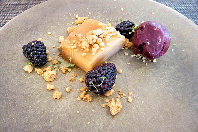 As a big seafood fan, I went for the Cornish crab with brown shrimps and pickled mackerel, and it definitely did not disappoint. Separated by two crispy little toasts, all the fish components were deliciously fresh and offered their own distinct flavors and textures; I had never tried mackerel before and, thanks to this, am now a convert. My friend, meanwhile, opted for the partridge (another new convert experience) – a tender breast with a salty skin that was favourably complemented by the tang of poached blackberries. Prior to both these dishes, we were brought two small loaves of bread made from buckwheat flour, and it’s no exaggeration when I say this was the most incredible bread I have ever tasted, gluten-free or otherwise.