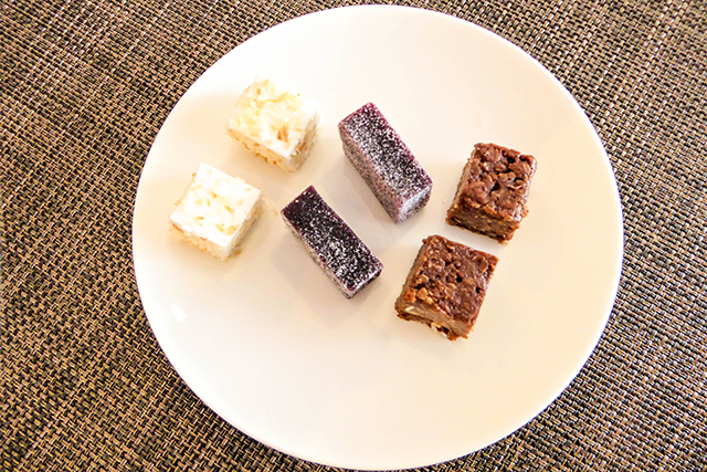 Eagle-eyed diners may notice that the restaurant simultaneously serves ‘regular’ (aka made with wheat) Charlie and the Chocolate Factory-themed afternoon tea (though this can also be offered gluten-free upon request when booked in advance). However, there is no issue of cross-contamination in the kitchen – in fact, Indigo has recently been accredited by Coeliac UK as a gluten-free restaurant. Components for the teas are created first thing in the morning and then stored separately, after which all surfaces, dishes and utensils et al are thoroughly cleaned and sanitized to make them ‘safe’ for gluten-free preparation and cooking for the remainder of the day.