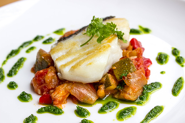 The next round included the Bacalao Con Samfaina, and “liquid olives” inspired by famed molecular gastronomist, Ferran Adrià. These liquid olives were very peculiar. They had the consistency of oysters, and you ate them like oysters, but they definitely tasted just like olives. The resemblance was uncanny. I have no idea how these are made, but I would like to know. The bacalao, also known as cod, was fantastic, and the “Catalan” vegetable stew underneath was flavorful and filling.