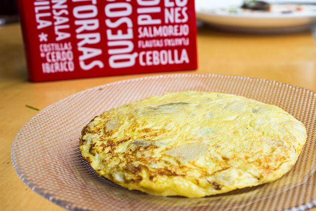 Next came the Tortilla De Patatas, which was completely different than any tortilla you’ve had in your life. In Spain, “tortilla” doesn’t refer to the thing you wrap your burrito in. On the contrary, a Spanish tortilla is kind of like the American omelette – an egg dish filled with whatever fixings, which in this case included potatoes and onions. I am a huge fan of potatoes in my omelettes because I am a carbaholic at heart, so this dish was particularly exciting for me.