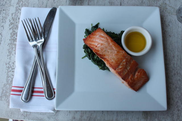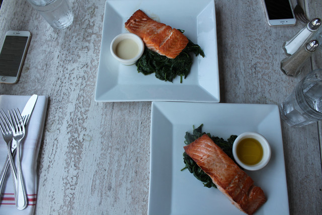 To start, I recommend ordering any of the raw fish specials or platters. Crab cocktail, Shrimp Cocktail, Oysters and more grace the list, and are all, of course, gluten free! At lunch, several salads are offered such as the Marinated Seafood Salad and Chopped Shrimp Salad which are perfect if you are in the mood for something lighter. Like most seafood restaurants, classics including fried calamari and crab cakes are offered on the menu, but as you may have guessed, they are not gluten free. My favorite section of the menu is the “Fresh Fish Selection.” Several of my favorite fish, including salmon, cod, tuna, and swordfish are offered, and you can select from blood orange jus, extra virgin olive oil, and chive beurre blanc to accompany your fish. If you’re feeling really hungry, you have to order the sirloin burger on Udi’s gluten free bread! The burger is massive and will leave you full for hours! The fries at Louie’s are thin and crispy–just how I like them– but they are subject to cross contamination, so if you are sensitive you will have to sit these out.