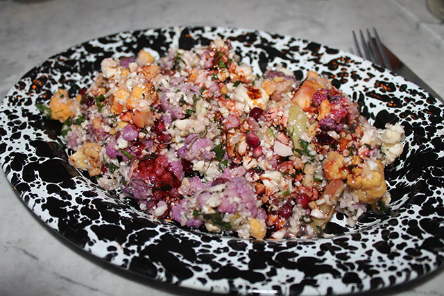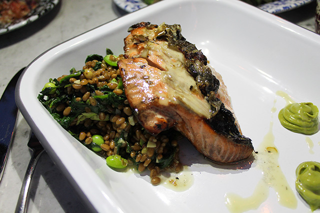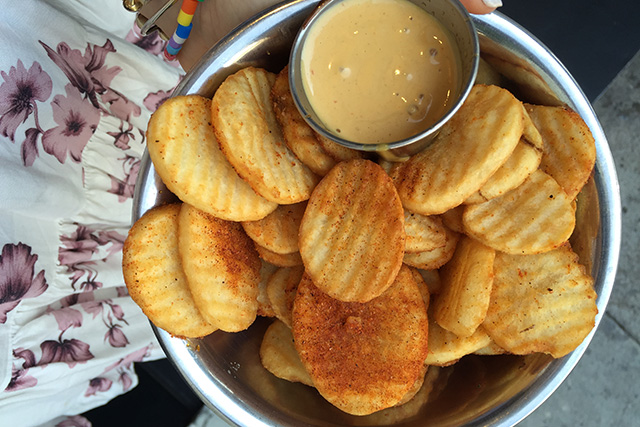First, I have to talk about how amazing the staff is. From finding us the best table on the roof and ensuring we were having a delicious meal every step of the way, to helping my friends and I take the PERFECT Instagram picture, the staff did it all with smiles and enthusiasm. The menu at Mama Shelter is super healthy, too, which I was so excited to see given it is bikini season! To start, I highly recommend ordering the hummus tasting with crudite instead of pita. We went with the avocado, cauliflower, and carrot hummus, and the dips were AMAZING. The carrot hummus with crispy brussels sprouts was my favorite! Next up was the cauliflower salad with pomegranate and mint. This chilled cauliflower salad is absolutely incredible and another must order. To round out the salad dishes, I recommend the melon salad for something light and refreshing! From the list of mains, the grilled salmon and 28-day dry aged delmonico were gluten-free, and we went with the salmon, because let’s be real- I order salmon pretty much wherever I go! The dish was delicious, and paired with a sprouted grain and spinach side which was equally as amazing. The best part about this rooftop menu was that “GF” was noted next to all gluten-free items, making ordering super easy!