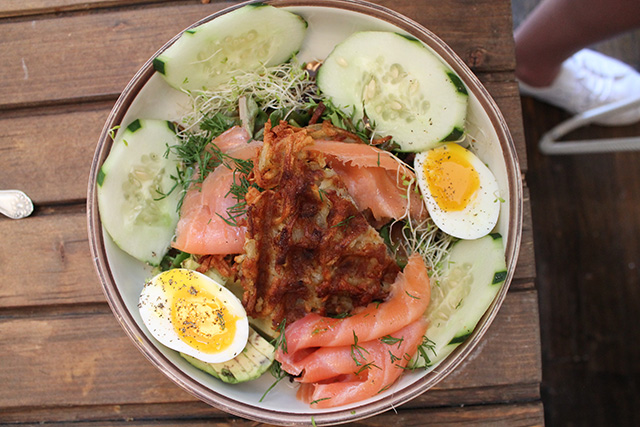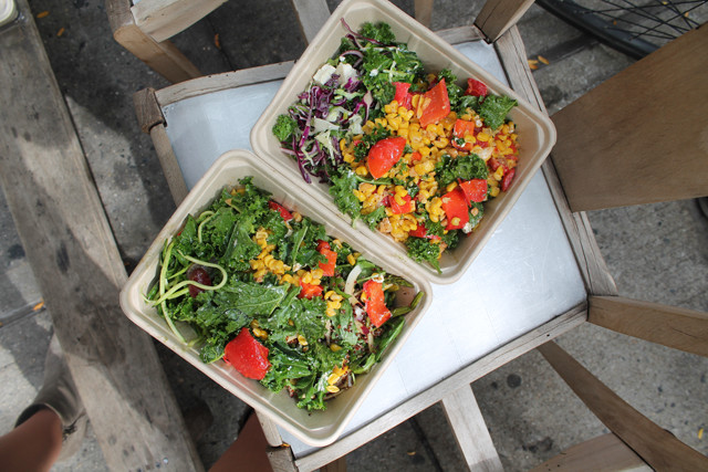 Maman is best for breakfast, brunch, and lunch, and it is the perfect place to grab a meal and catch up with a friend, or sip on coffee while finishing up some work. On the menu, essentially just the salads are fair-game. Yes, this may sound boring, but the salads are unique, healthy, and tasty, so you won’t miss the gluten-filled options at all! You have the option of enjoying just one salad, or creating combo plates of two or three salads. If you go for the three-salad combo, which I obviously did, the large portions will have you full for hours. My favorite salads were the zucchini noodles with black olives, basil, plum & a kale and basil pesto, baby arugula salad with roasted asparagus, apple, roasted yellow squash, fennel, red quinoa, butternut seeds & a balsamic glaze, and the kale salad with roasted peppers, goat cheese, almonds, and roasted corn. Round out your meal with a side of fruit and an iced-coffee, and you’re all set!