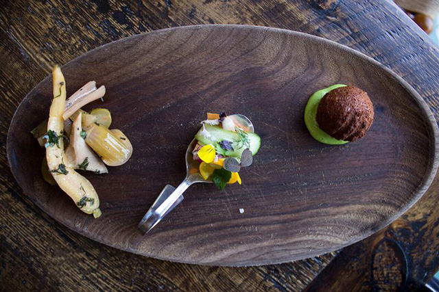 For the main course, I ordered the Turbot, which came with zucchini, squash, lemon, almonds, and oregano. This white fish was cooked just how I liked it – very citrus-forward with plenty of lemon. Throughout the meal I also had a chance to nibble on Masseria’s take on the falafel, which was the creamiest chickpea fritter I’ve ever had the pleasure of tasting.
