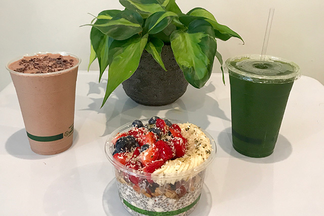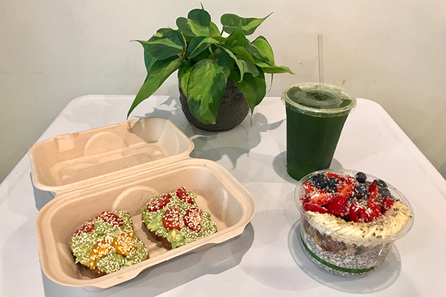 Have you ever walked into a restaurant and literally wanted everything on the menu and become so overwhelmed you have someone at the restaurant order for you? Yeah that sums up my experience at Mother Juice. I wanted EVERYTHING! Because everything is gluten-free! We decided to dabble in each section of the menu starting with the gluten-free toasts! I was tempted to order the avocado toast, but had to change it up when I saw the “Cinn-full.” Gluten-free toast topped with coconut oil, almond butter, sliced green apple, honey, cinnamon; this toast was my high-fat diet’s dream! From the juice menu I ordered the Moju (kale, cucumber, green pepper, celery, green apple, orange, ginger) to make sure I loaded up on nutrients for my busy day ahead. If you follow me on Instagram you know how much I love my smoothies, and I was most excited for the Almond Love Smoothie (housemade almond milk, coconut milk, cinnamon, strawberries, flax, almond butter, maca, dates, and NO banana). This would absolutely be my go-to daily order at MJ! Lastly, everyone who walked into Mother juice ordered the Health Bomb, which I like to call Chia Pudding on Steroids. Made with coconut milk, chia seeds, flaxseed, and oats, and topped with honey, granola, bananas, fresh berries, coconut flakes, and bee pollen, this bowl is a total dream, and totally filling!