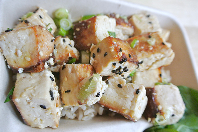 Walking into the restaurant, I was offered one of the largest selections of gluten-free dishes I have ever experienced. Their entire menu is gluten-free (including a spread of desserts that include banana bread, brownies, and donuts!) and you are able to choose 3 dishes, 2 sides and one main. Everything was so tempting, and was incredibly fresh and perfectly prepared. We ordered a variety of items off of the menu and every single dish was incredible. I especially appreciated that they offered gluten-free noodles (the Peanut Glass Noodles), and the gluten-free mashed sweet potatoes offered with any of their main protein dishes were creamy and delicious. While they do not offer any bread, gluten-free or regular, on the menu, you certainly won’t miss it thanks to the sweet potato mash! My other favorites included the charred avocado which was filled with Greek yogurt puree that tasted like cheese, and the charred BBQ broccoli which was perfectly cooked and full of flavor. If you eat meat, I also highly recommend the chicken breast as the protein side– it was perfectly seasoned with lemon, rosemary, and thyme. But if you don’t eat meat (or even if you do) the sesame scallion tofu was absolutely incredible. Even if you are a little wary of tofu, or are concerned that it is bland, I can assure you that this dish was anything but. It was perfectly seasoned with scallions and had hints of ginger, making it one of my favorite dishes off the menu.