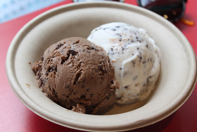 I recently went to the store’s East Village location, and although the vegan ice creams were not featured as one of the ten ice cream flavors of the day, pints of the vegan ice cream are kept in back, and the staff was happy to serve me some scoops! The vegan chocolate chunk (almond based) and the coconut chocolate chip (coconut based) are both delicious!