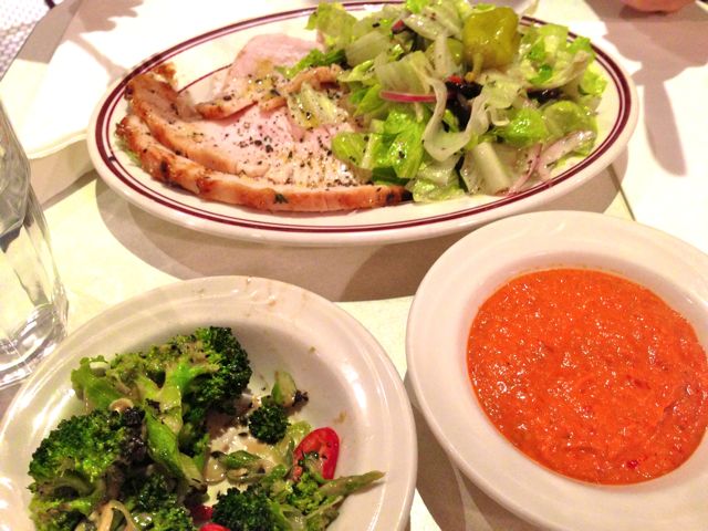 Although there is no gluten free pasta or bread offered, there are still plenty of options for the nobread crowd! To start, if you can tolerate dairy, the mozz ball and mozz prosciutto are both gluten free, as are the raw clams and salad options. Don’t fill up! The main courses are huge and will definitely leave you full. For a main course, Parm offers meat and vegetable options on a roll, hero, or as a platter. As I mentioned earlier, there is no gluten free bread, so it is nice to see a “platter” option that caters to people with dietary restrictions. The sausage and peppers, potato and egg, and house roasted turkey platters are 100% gluten free and served with a side salad. Who knew dining Italian could be so easy and healthy?? Chicken francese is also listed as an offering; however, the chicken is dusted in flour. My advice for the chicken francese lovers: tell your server that you are gluten free and the chef will happily prepare your chicken with rice flour. If you’re not full yet, supplement your meal with Parm’s tasty vegetable sides. The pickles, charred broccoli, chick peas, corn, cucumbers, beets, and rabe are all gluten free.