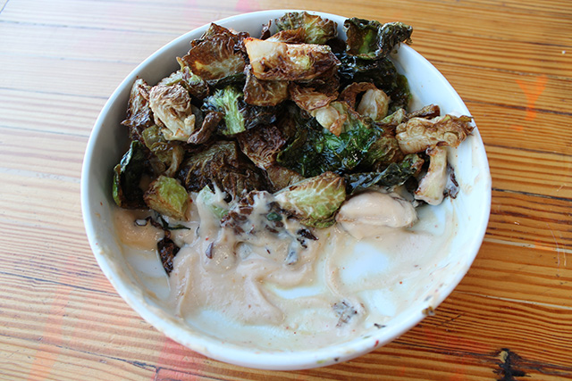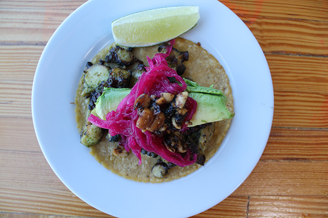 Almost all of the tacos are NOBREAD-approved and there are plenty of GF appetizers to kick off your meal. Without fail, every meal at Petty Cash starts off with an order of fresh guacamole and corn chips (careful of cross contamination on the corn chips) and the kale cauliflower nachos! The nachos are the most popular dish at the restaurant, and they are gluten-free if you ask for no poblano sauce. The crispy brussels sprouts on top of cauliflower crema are another go-to of mine, and I’m happy to announce that these might be one of my favorite brussels sprout dishes in all of LA. The ceviche and shrimp tostada are excellent gluten-free orders, and for the taco lovers, brace yourself. As I mentioned earlier, almost all of the tacos are gluten-free! My favorite taco is the grilled octopus with avocado! Not to worry, vegetarians have options too! The grilled mushrooms are amazing and the dorados tacos (made with potatoes) are delicious. For the carnivores, the shrimp, chicken, and al pastor taco are for you.
