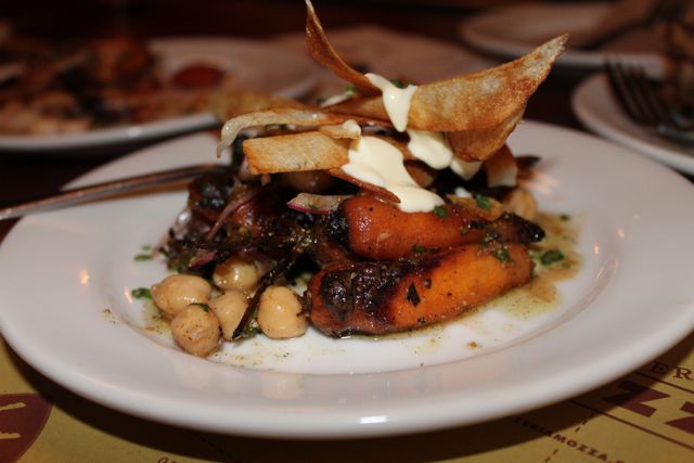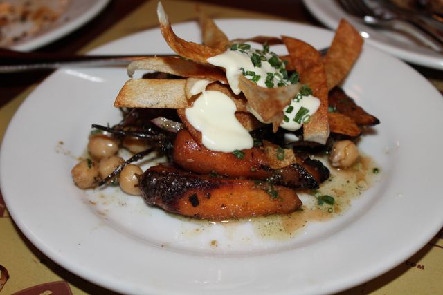 Expectations were high going into my dinner, as I’d heard rave reviews about the restaurant from my LA foodie friends. To start, you HAVE to order the cauliflower fritti. The cauliflower was dusted in rice flour and fried, and one of the best cauliflower dishes I’d ever had. If you are sensitive to cross contamination, note that the cauliflower shares the fryer with other breaded dishes, so sadly you would have to sit those out. Same goes for the squash blossoms and the fried potatoes. Next, I ordered the roasted carrots with ceci and cumin vinaigrette and prawns al forno. The carrots were delicious and incredibly flavorful, and they were dairy free too! The entire menu at Pizzeria looked so delicious, if only I wasn’t dining solo! For my next visit, I’m eyeing the baby romanesco al forno and brussels sprouts with prosciutto and nobreadcrumbs; both sounded incredible and I had major food envy as I saw them come out of the kitchen. Now to the pizza. Unfortunately, no gluten free pizza crust or bread is offered at Pizzeria Mozza, knocking the pizza and panini section off the menu, but all of the carne and insalate dishes were gluten free, so you wouldn’t miss those carbs!