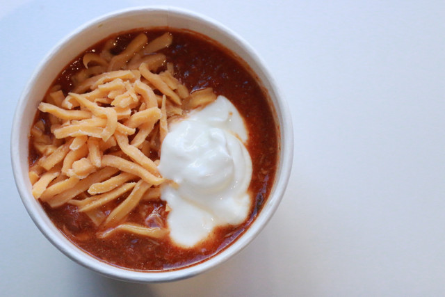 Another great thing about Protein Bar is that their lunch starts at 10:30 am. This means the world to the 5 am elliptical-crazed individual who ate breakfast before the sun was up – no more waiting until noon! You can get your gluten-free lunch fix in so many ways. If it’s cold outside, cuddle around a bowl of their chili. Choose chicken or vegetarian (soy protein), and you’ll get smoky spicy flavors topped with a dollop of fat free Greek yogurt and cheddar cheese.