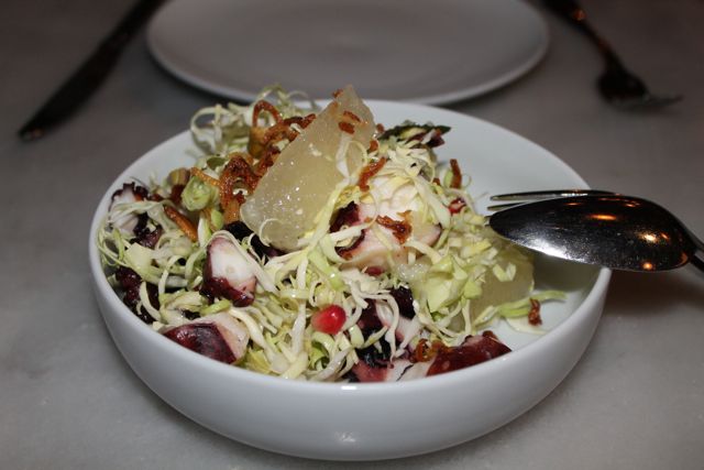 I had the opportunity to go to Republique and was blown away by the restaurant. **NOTE** The menu affiliated with this review is a very ROUGH look at the types of dishes you may see at Republique as the menu changes daily. For instance, the ora king salmon gravlax that was listed under TOAST the night I went to the restaurant (not GF) was featured as part of a fingerling potato salad the night before (GF), and the night before that it was served in a spoon (GF). This brings me to one of the most important features of the restaurant. The kitchen was VERY accommodating when it came to gluten allergies and other dietary restrictions. When I was at the restaurant, rather then just withholding breadcrumbs or brown butter in dishes (I’m dairy free too), the kitchen went out of their way to come up with off the menu food pairing for the items I ordered that needed alternations. So what should you order? To start, the hamachi crudo with a banana-thai curry and pineapple was pretty amazing, as were the scallops. The beef tartare was also gluten free, and although I didn’t order it, I wish I had! The little gem salad with avocado, fennel and almonds was the PERFECT appetizer for you to have on your own or to split with a friend; it was deliciously light and tangy. My table and I also ordered the roasted cauliflower and broccoli, octopus salad, and roasted vegetables. All were delicious! The capers that were paired with the cauliflower and broccoli were incredibly unique and made the veggies all the more amazing! There was no gluten free pasta or bread at the restaurant, so that knocked out the menu’s TOAST, BREAD, TARTE, and PASTA sections, but how many nobread-friendly options the restaurant had kept me full for HOURS.